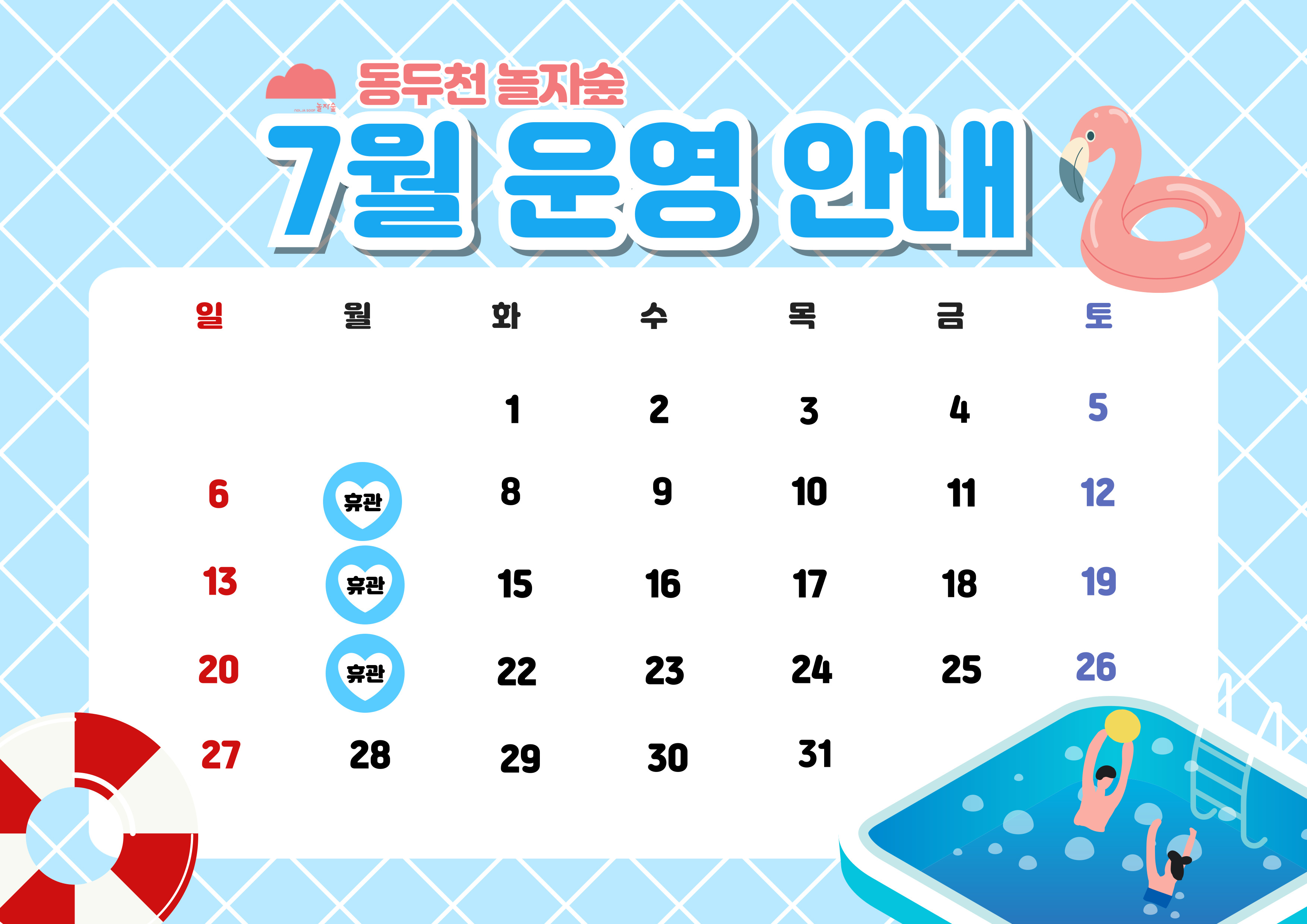 동두천 놀자숲 2025년 7월 운영 및 휴관 안내입니다.