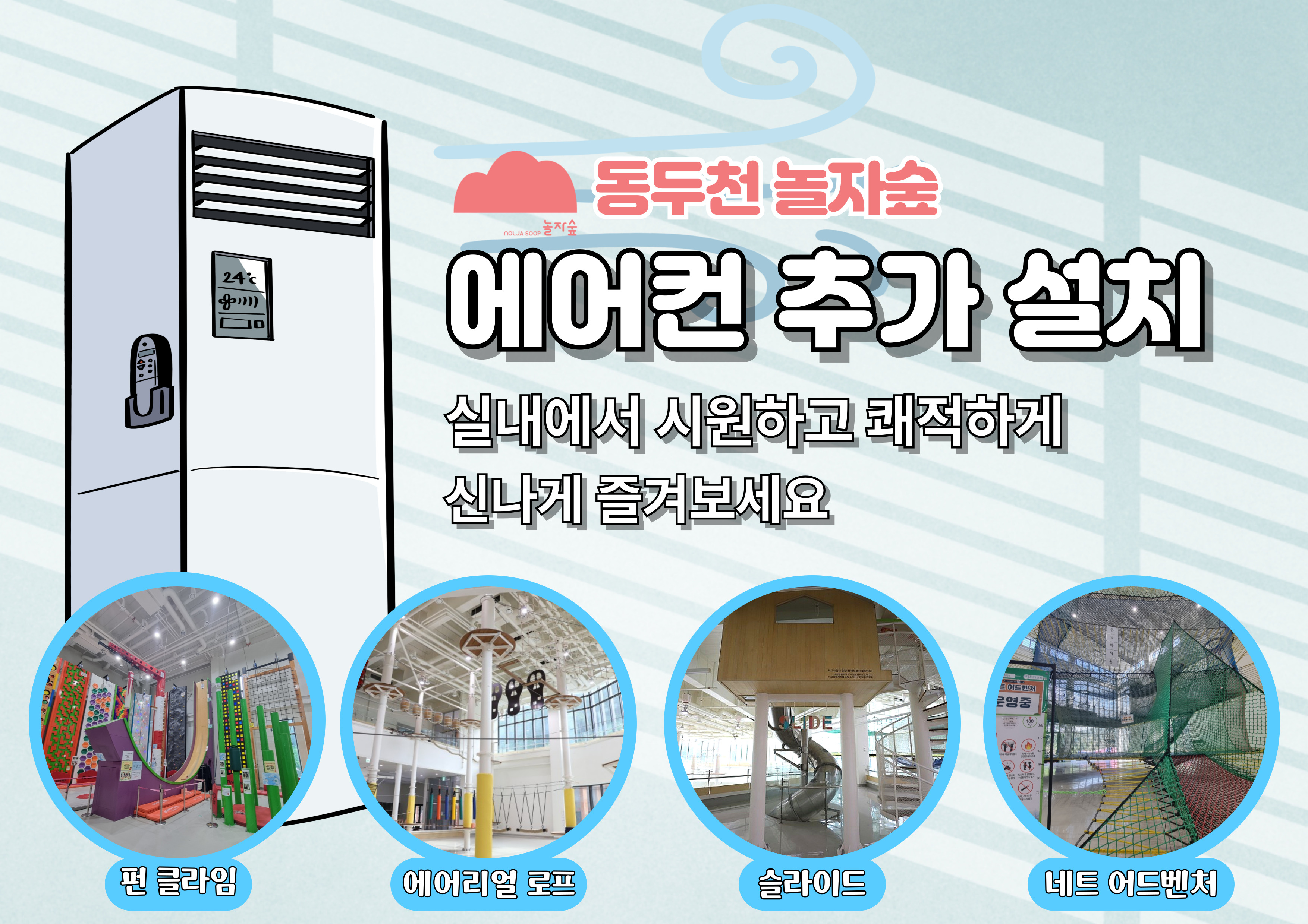 공지사항 에어컨 추가 설치 안내 작성자 놀자숲 작성일 2025-09-16 08:16 조회 42 동두천 놀자숲 에어컨 추가 설치 안내입니다. 놀자숲 실내에 추가로 에어컨이 설치되엇습니다. 뜨거운 여름을 피해 시원한 놀자숲 실내에서 신나게 즐겨보세요~ 운영시간 : 화~일요일(7/28 – 월요일 정상운영) 실내 : 10 ~ 18시, 실외 : 10 ~ 17시, 물놀이장 : 12 ~ 16시 좋아요 0 싫어요 0 인쇄 « 2025년 7월 운영 안내 2025년 8월 운영 안내 » 목록보기 Powered by KBoard